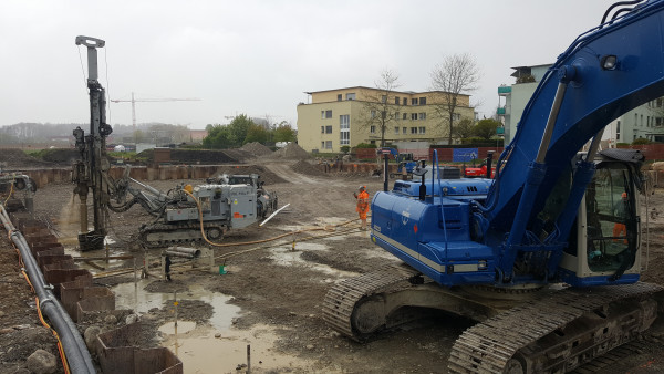 Die schwierigen Baugrundverhältnisse mit anstehendem Grundwasser stellten grosse Anforderungen an die Planung von Baugrubenabschlüssen, Wasserhaltung, Pfählungen und Bauwerksabdichtung. Hohe Ansprüche wurden auch an die Tragwerksplanung für das Hallendach mit den Schrägstützen und den fassadenintegrierten Zugbändern sowie an die Abtragung der Horizontal- und Vertikallasten gestellt.