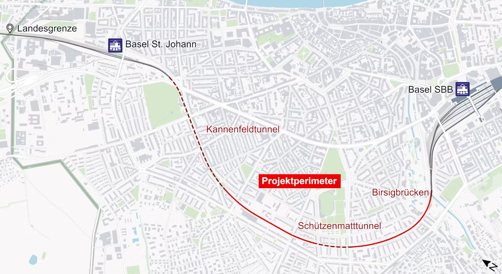 Die Europäische Union, die Französische Regierung und der Schweizer Bundesrat wollen die NEAT-Strecken via Frankreich besser zugänglich machen. So sollen Güterzüge mit Sattelaufliegern von vier Metern Eckhöhe auch via Elsässerbahn zum Gotthard- und Lötschberg-Basistunnel gelangen. Ziel ist, zusätzliche Gütertransporte von der Strasse auf die Schiene zu verlagern. Der Bund hat deshalb die SBB beauftragt, das Profil der Strecke Basel St. Johann - Basel SBB anzupassen. Die SBB beabsichtigt daher mit dem Ausbau des ca. 4,5 Kilometer langen Streckenabschnittes Basel St. Johann - Basel SBB auf das Lichtraumprofil EBV3 S2 eine Ausweichroute herzustellen. Die Strecke umfasst zwei Tunnels, daher müssen die Gleise abgesenkt und die Tunnelprofile mit gewissen Gewölbearbeiten vergrössert werden. Zudem soll in diesem Zusammenhang die Birsigbrücke instand gesetzt werden. Im April 2024 wurde das Plangenehmigungsverfahren eröffnet.